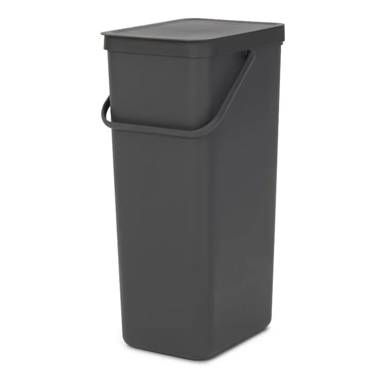 Feed your empty packaging, bottles, cans and anything else you want sorted to this handy Brabantia Recycle Bin Sort & Go 40L Grey. It fits snugly in corners, flat against the wall, and has a large handle for easy carrying and emptying. Just what you need for a smooth running recycling operation at home! Space efficient fits closely to the wall or conveniently in a corner. Shop the Brabantia range today at Harris Scarfe!