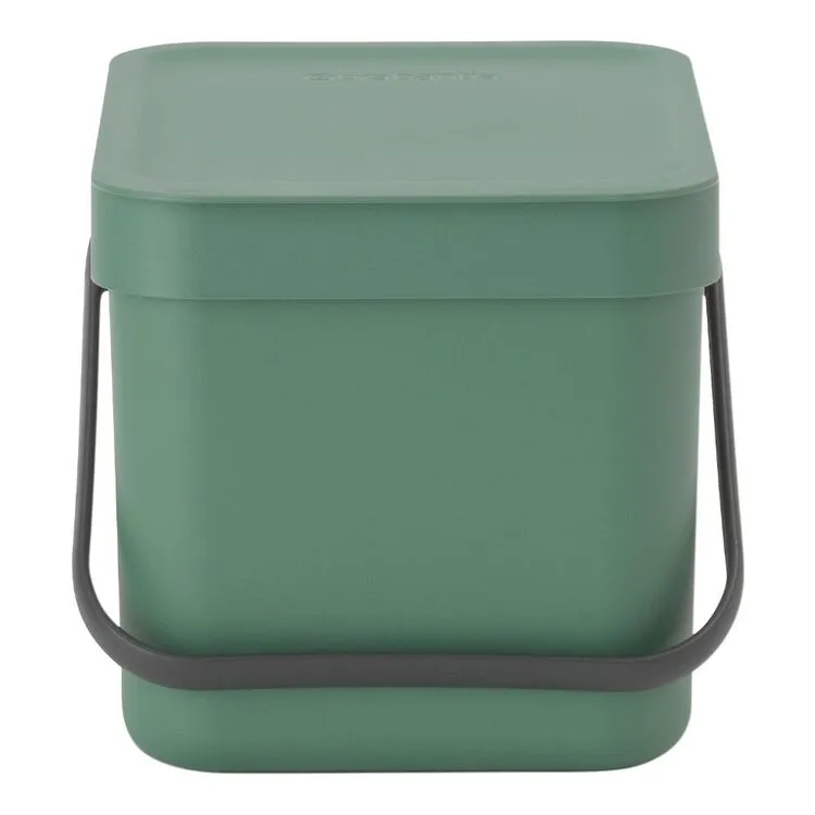 The Brabantia Waste Bin Sort & Go 6L Fir Green with stay-open lid is perfect for disposal of organic waste right on the kitchen counter.