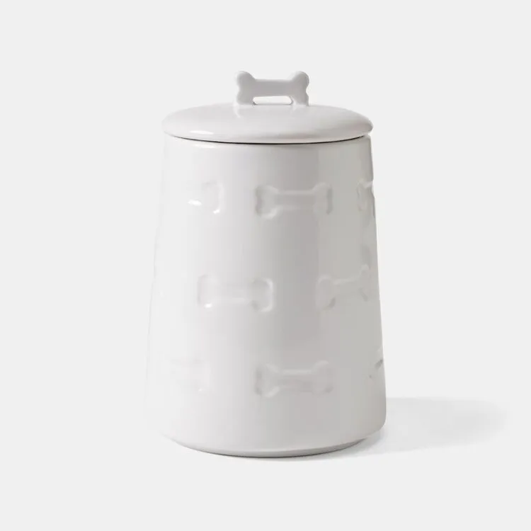 Keep your pet’s treats stored in this stylish Chyka Love Otto Treat Jar. The lid helps keep your pup’s treats fresher for longer, ensuring that your dog is always taken care of. The jar features a classic embossed bone design all around and on top of the lid and is made from a premium porcelain material that is both durable and easy to clean.
