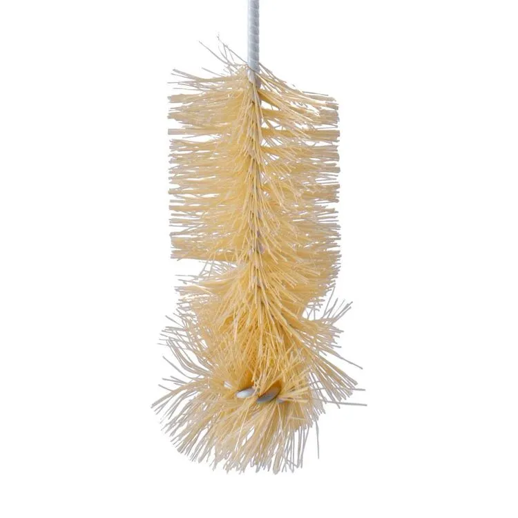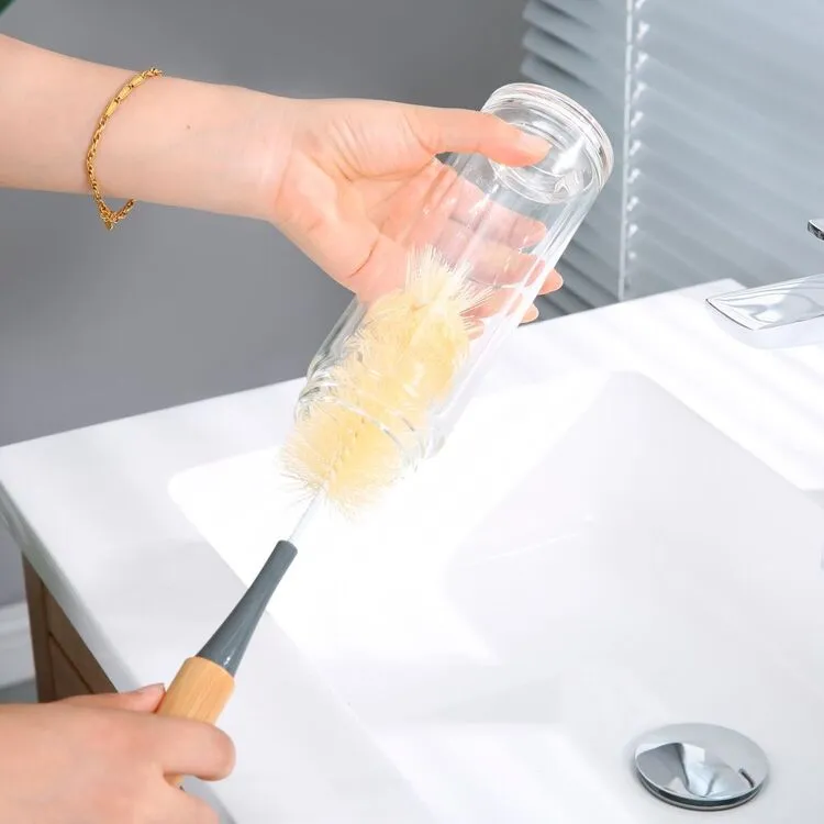 The Clevinger bamboo bottle brush makes cleaning drinking bottles easy. This brush is made from bamboo, recycled plastic, soft recycled nylon bristles and a hemp storage loop. The long handle gets down to the base of tall bottles, while the soft bristles clean your bottles without scratching. The large round head compresses down to enter narrow bottles and the sturdy wire frame allows bending during use.