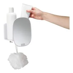The Joseph Joseph Easystore Compact Shower Caddy takes the hassle out of shower storage. It features hooks for a razor and sponges, as well as a hinged, shatter-resistant acrylic mirror. The shelf lifts off the fixing bracket, making it very easy to clean, and itβs quick and simple to install using the powerful, super-grip suction cup. This also means itβs fully repositionable without damaging your wall or tiles, as well as being large enough to hold all your essential soap and shampoo bottles.