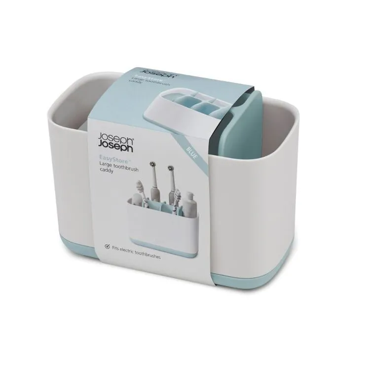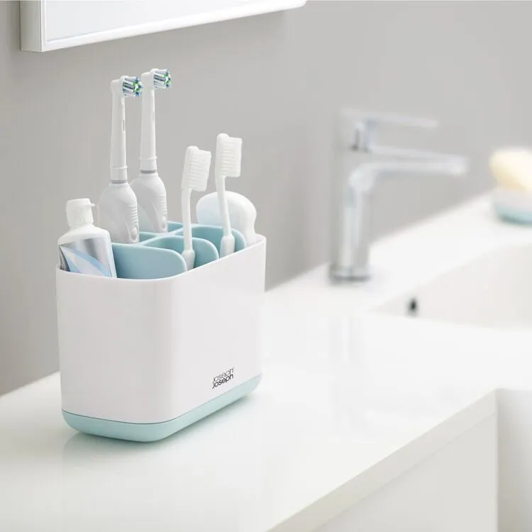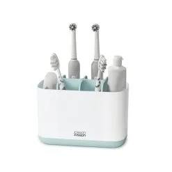 This large Joseph Joseph Easystore Large Toothbrush Caddy White is divided into several sections providing organised storage for a range of oral care items including manual/electric toothbrushes, toothpaste tubes and dental floss. It dismantles for easy cleaning and features a shallow compartment for small items, a ventilation hole for quick drying and a non-slip base. Shop the Joseph Joseph range at Harris Scarfe today!