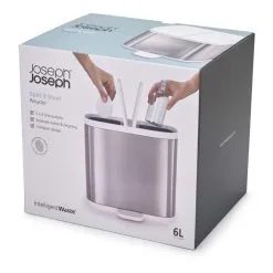 Joseph Joseph Split Bathroom Waste Seperation Bin Steel Silver