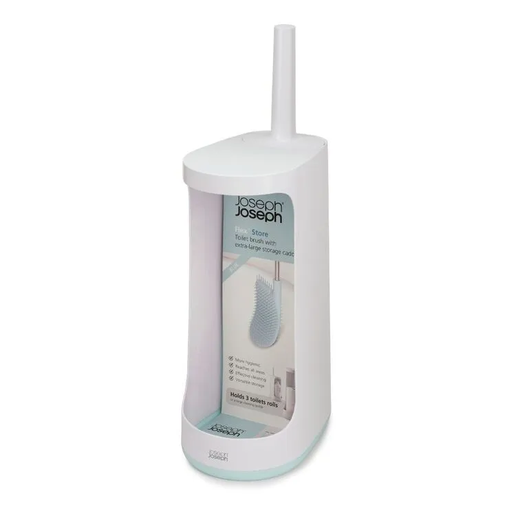 The Joseph Joseph Flex Store Toilet Brush With Extra-Large Caddy is a flexible and durable toilet brush that offers a more hygienic and effective approach to cleaning. With a versatile storage design, the extra large caddy can hold up to three spare toilet rolls or a large cleaning bottle! Explore our selection of cleaning and bathroom accessories at Harris Scarfe, in store or online today!
