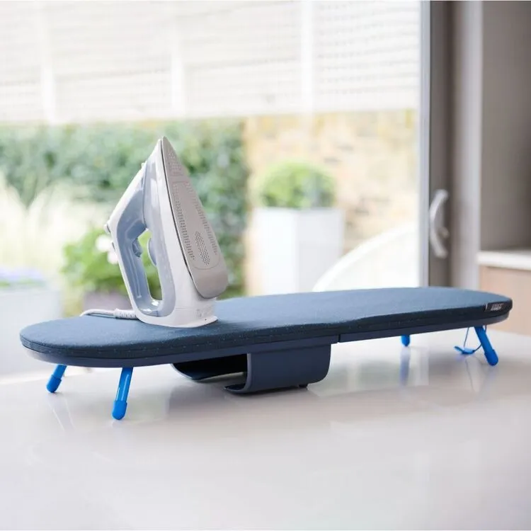 The Joseph & Joseph Pocket Plus Folding Table-Top Ironing Board is the perfect tool to help you get your clothes looking pristine. With its folding design and accompanying hanging hook, you can quickly and easily store it away, keeping your living space free of clutter. The ironing surface is generous, shaped perfectly to ensure optimum convenience and comfort. The unique compartment means you can store your iron safely while the non-slip feet make set up super quick and easy. And with its 100% cotton top-layer and thick felt underlay, your ironing board cover can fit snugly and safely while you enjoy the smooth glide that comes with it.