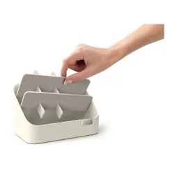 This compact Viva Tiered Cosmetic Organiser from Joseph Joseph is the perfect storage option for a range of essential cosmetics and accessories, such as make-up brushes, eyeliners and nail varnishes. The tiered design allows quick and easy access to everything inside, and the divider helps keep the contents neatly organised and can also be removed for easy cleaning.
