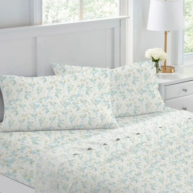 The Laura Ashley Rena 375 Thread Count Cotton Sheet Set has a luxurious 375 thread count to create a smooth and comfortable texture that will get you jumping into bed and sleeping in no time. This set features a pretty, floral design in a subtle watercolour-style which is printed in soft green and blue hues to create an atmosphere of peace and calm. For more premium bed and linen options, shop the extensive range available at Harris Scarfe today!