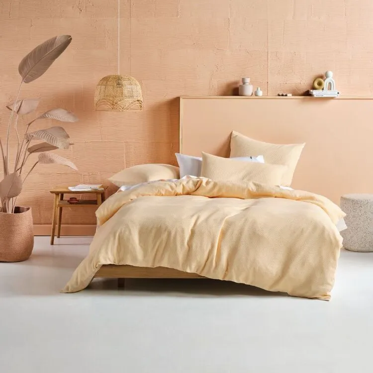 When waffle gets an upgrade, it comes in the form of Providence. Made from textured, woven cotton, this set in pale peach is a winner for any bedroom, with its lightweight and textured waffle aesthetic for an effortless, plain-dyed look that’s easy to style. Complete this set with its coordinating European pillowcases for added texture. Available online or in-store today at Harris Scarfe!