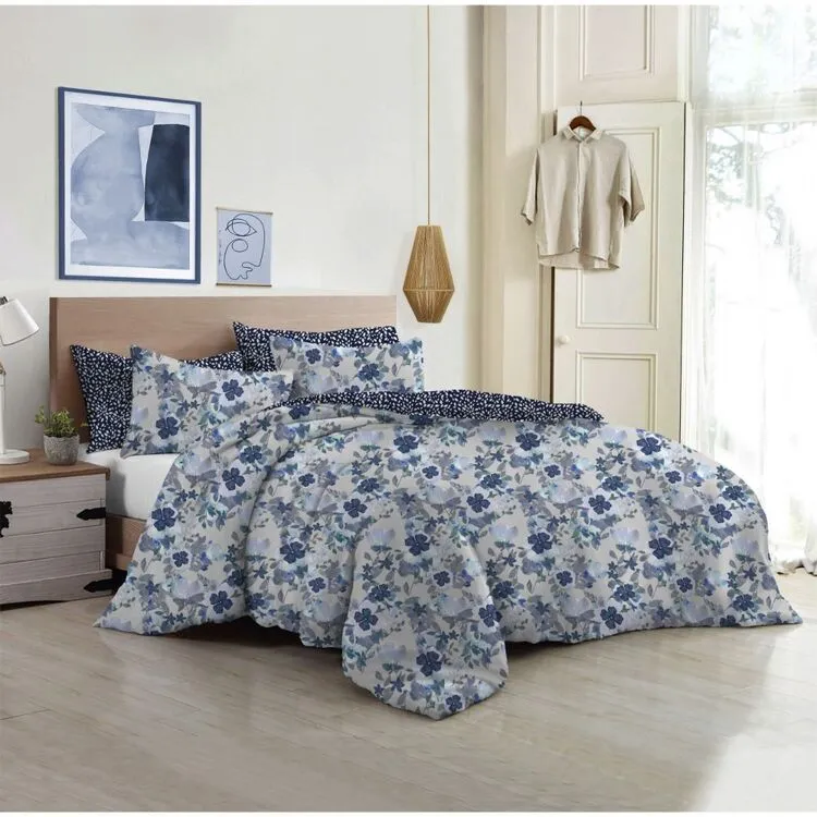 Enhance your bedroom aesthetic with the two beautiful blue floral prints that this reversible Polo Botanic 250 Thread Count Cotton Quilt Cover Set has to offer. With a ditsy white floral print on a deep indigo background and reverse that features large painterly florals in a mix of soft sapphire and teal blue shades, you can flip this set based on your personal style and bedroom theme. Composed of 100% cotton, this quilt cover set is breathable, soft on the skin and suitable for all seasons.