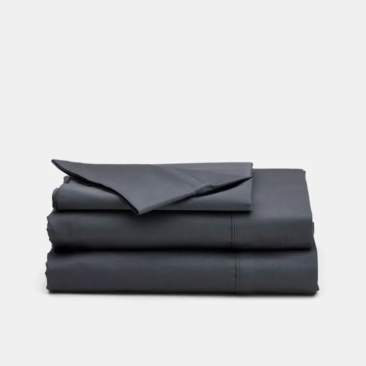 Allow your mind to relax with this refined Cotton Sateen Sheet Set from our Shaynna Blaze collection. This stunning sheet set has been crafted with a 375 thread count and provides your room with a contemporary feel that suits all tastes from minimalist to comfort. Bathe your bedroom in a serene atmosphere using the dark hues of this premium crafted set by Shaynna, well suited for warm weather but also perfected for all round use.