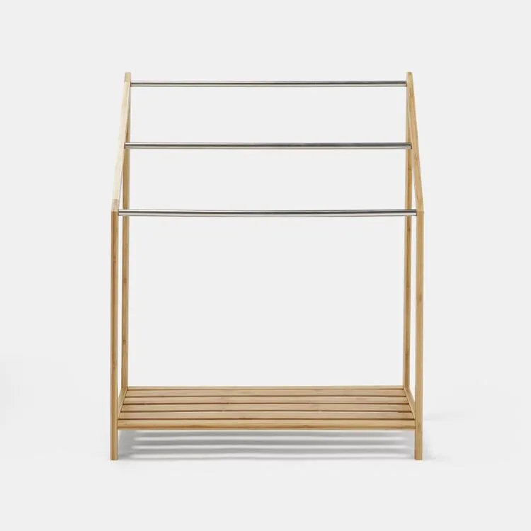 The Soren Bamboo Tower Rail With 3 Rails features 3 handy tiers, providing ample space to store or hang up your towels. This versatile tiered rail is made from lightweight and durable bamboo, perfect for drying out delicate clothing or bath towels. It’s portable design ensures you can easily move from room to room when needed. This tower rail also includes a bottom shelf for extra space.