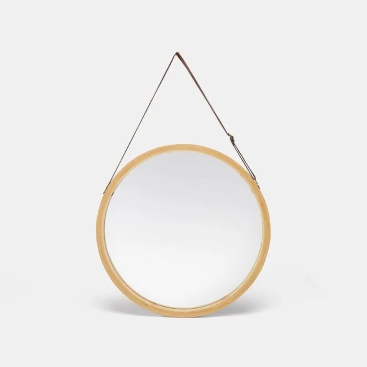 A staple piece for any home, the Soren Round Mirror 38x38cm boasts a sleek, modern look and large 38 by 38 cm size. It features a light wood frame and rounded style, with a handy top strap to hang from your wall.
