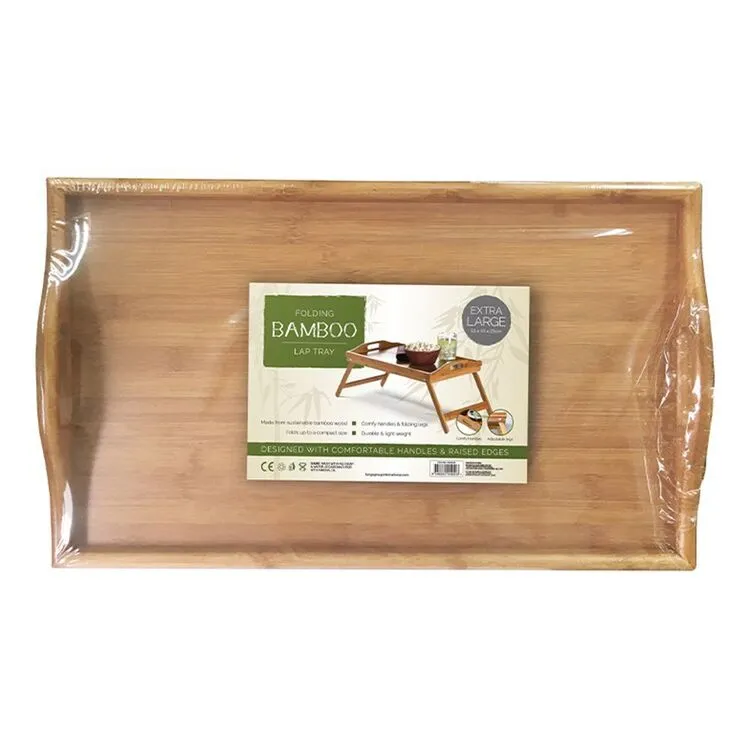 Versatile bamboo tray folds up for easy storage
