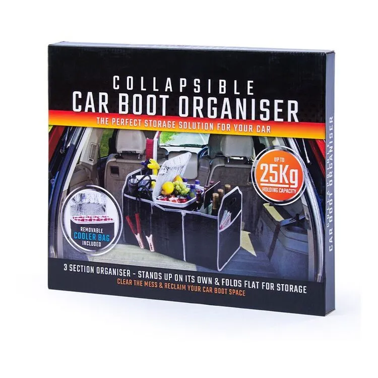 Reclaim your trunk space with this handy and versatile Tango Collapsible Car Boot Organiser, perfect for road trips and camping holidays! With three generously sized compartments, you’ve got plenty of room to store cleaning supplies, maps, emergency gear and groceries. The Tango Boot Organiser stands up on its own and folds flat for easy storage when not in use.